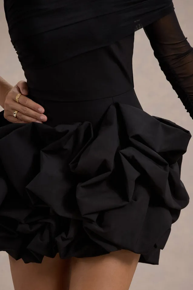 Regatta | Black Asymmetric Mesh Sleeve Ruffle Mini Dress