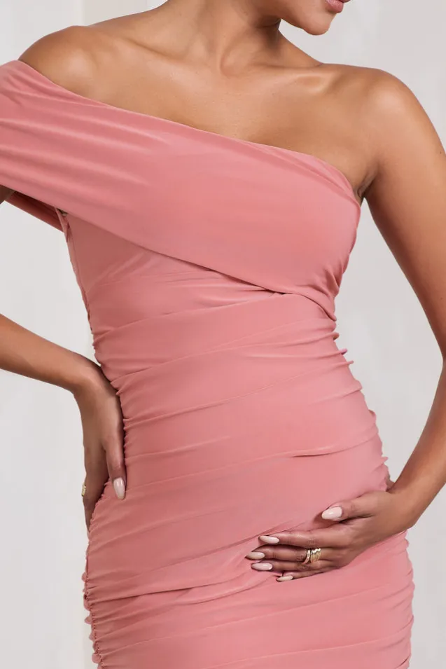Remember Me | Pink Maternity One Shoulder Midi Dress