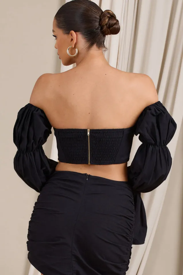 Roman | Black Bardot Puff-Sleeved Crop Top