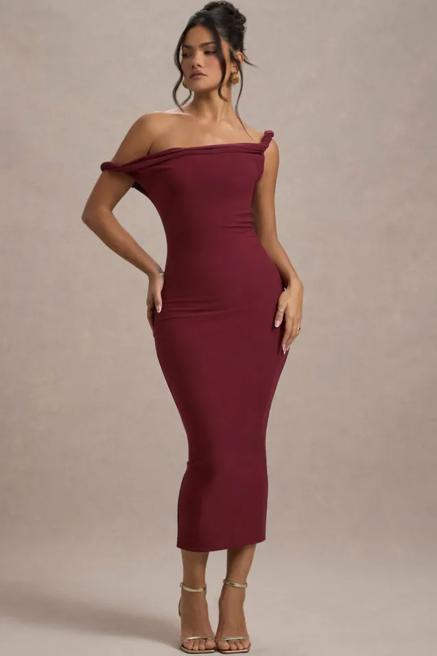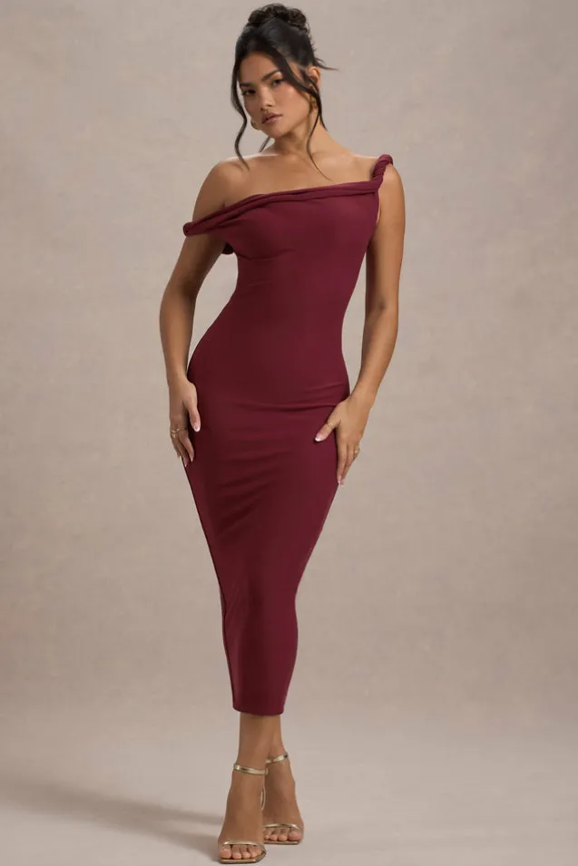 Minimalistic with a twist, say hello to Salome. This midi dress in berry has been crafted in our premium brushed jersey for figure-flattering comfort. Detailed with an asymmetric twisted neckline for a new season shape, keep Salome at the forefront with a sleek updo and gold accents.Features – Premium brushed jersey- Bodycon fit – Asymmetric twisted neckline – Sleeveless- Midi length Sizing & Fit Model is 5’6 and wears UK size 8/US size 4Product Information Designed exclusively by Club L London Fully lined with excellent stretchPremium brushed jersey in Berry (95% Polyester, 5% Elastane) 120cm total length