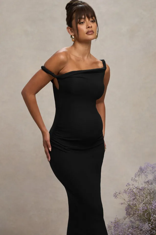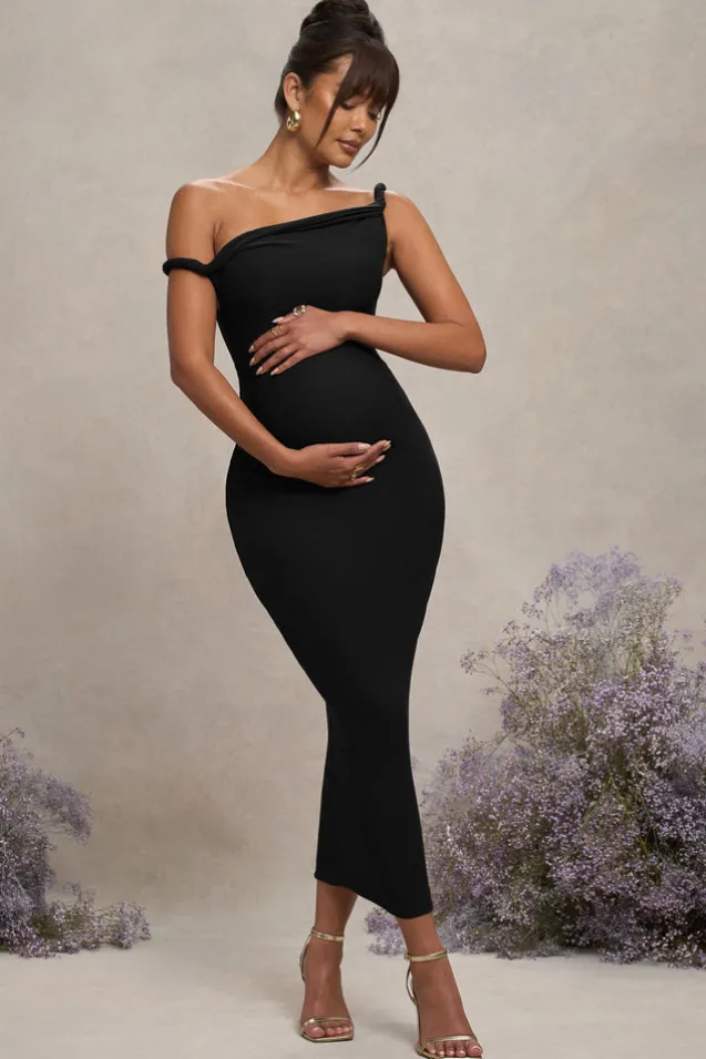 Salome | Black Twisted Asymmetric Maternity Midi Dress