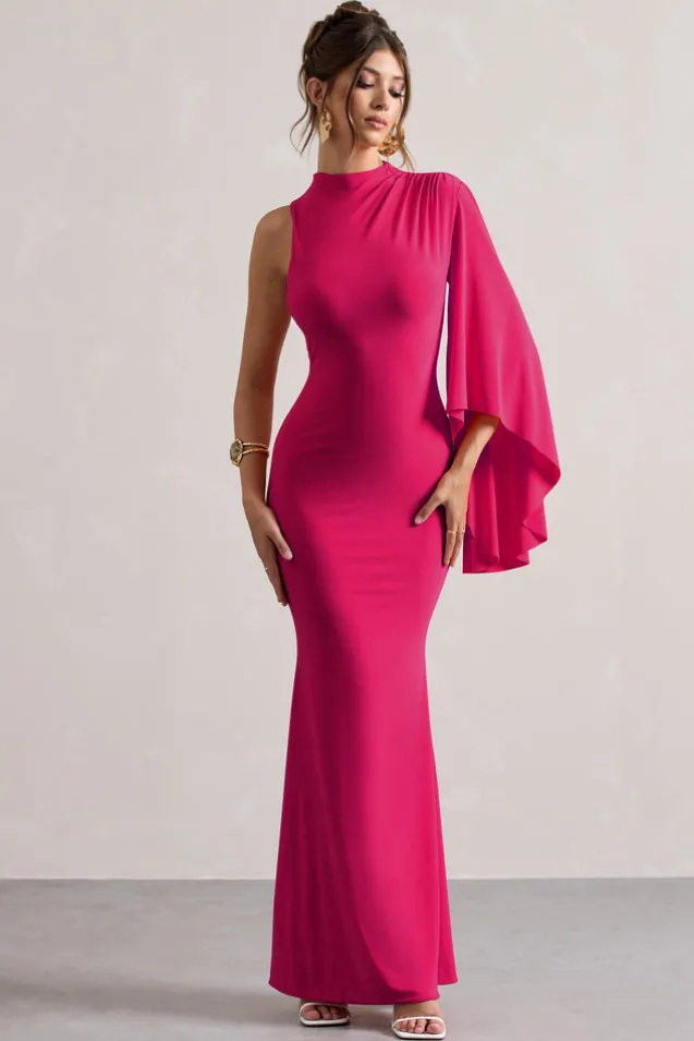 Samaya | Pink High-Neck Cape-Sleeve Maxi Dress