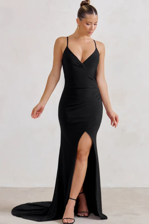 Sammi | Black Cami Plunge Wrap Maxi Dress