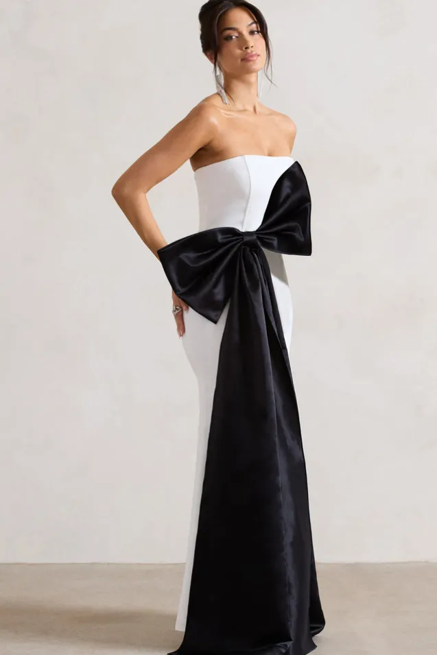 Sincerely | White Bandeau Split Maxi Dress With Oversized Black Bow