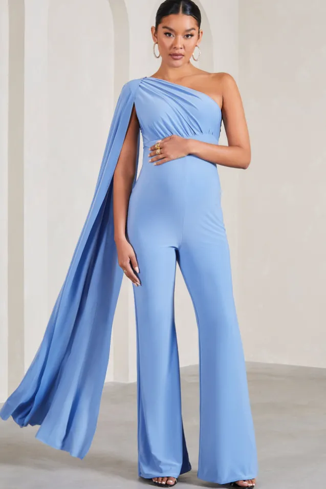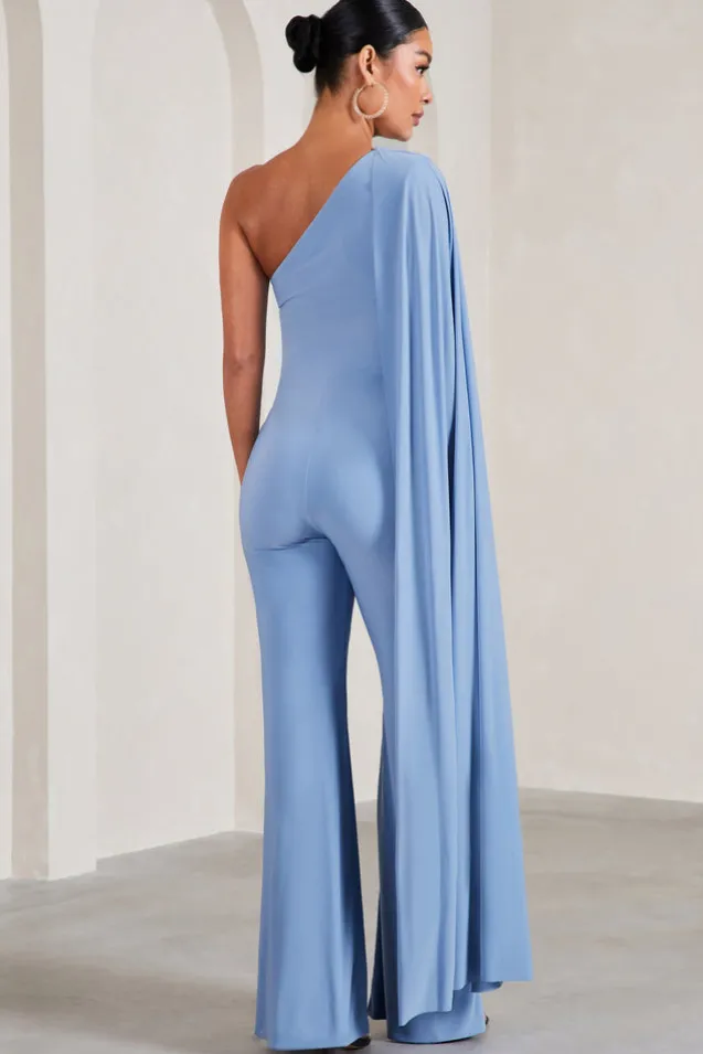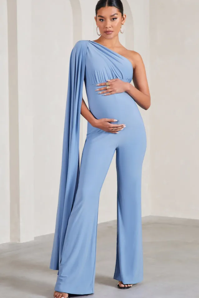 Sing To Sleep | Powder Blue Maternity One Shoulder Cape Jumpsuit