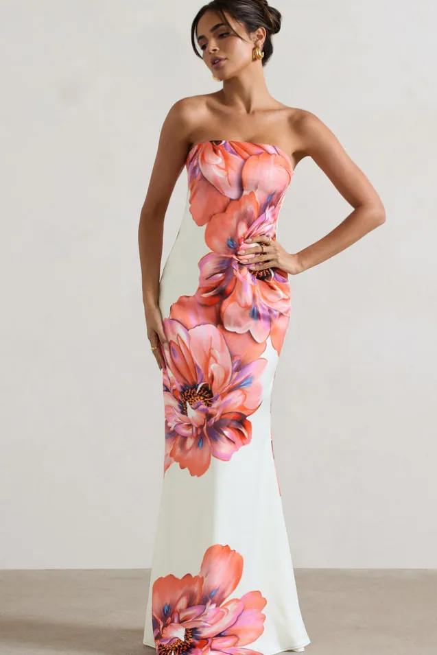 Sofiane | Cream u0026 Pink Floral Print Bandeau Maxi Dress