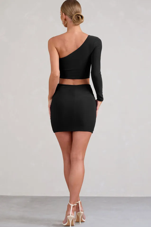 Whether you’re going to brunch or somewhere abroad, step out in style wearing this aptly-named mini skirt. Step Out is designed in sculpting stretch jersey with plenty of ruching to accentuate your natural curves. This black high-rising skirt matches Step Up, another wardrobe staple from Club L London.Features- Premium stretch jersey- Fully ruched- High rise- Bodycon fit- Split hemline- Matches Step Up topSizing & FitModel is 5’8″ and wears UK size 8/US size 4Product InformationDesigned exclusively by Club L LondonFully lined with good stretchPremium jersey in Black (95% Polyester, 5% Elastane)41.5cm total length