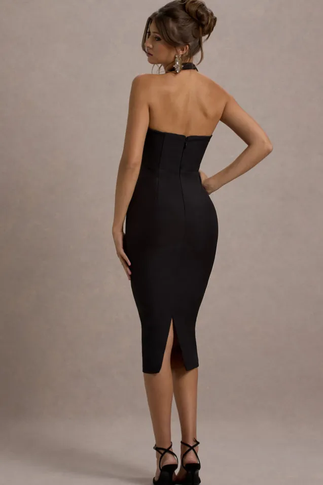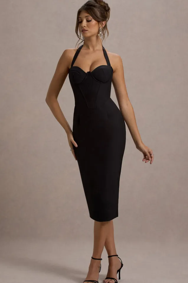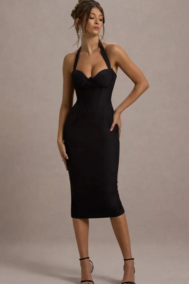 Supermodel | Black Halter-Neck Corset Midi Dress