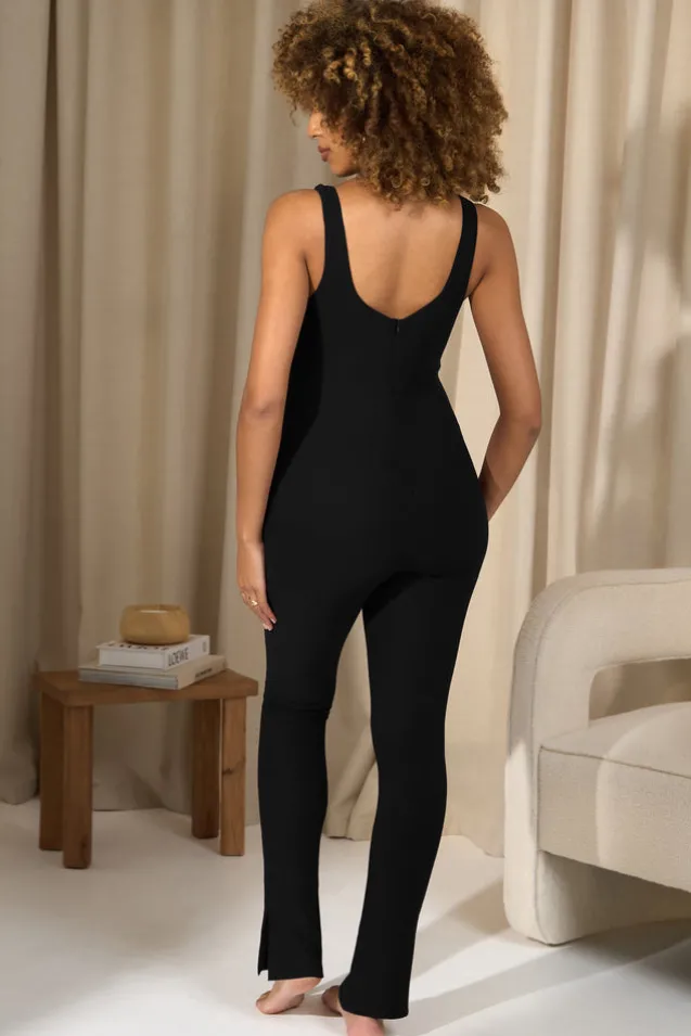 Teagan | Black Square-Neck Slim-Leg Maternity Jumpsuit