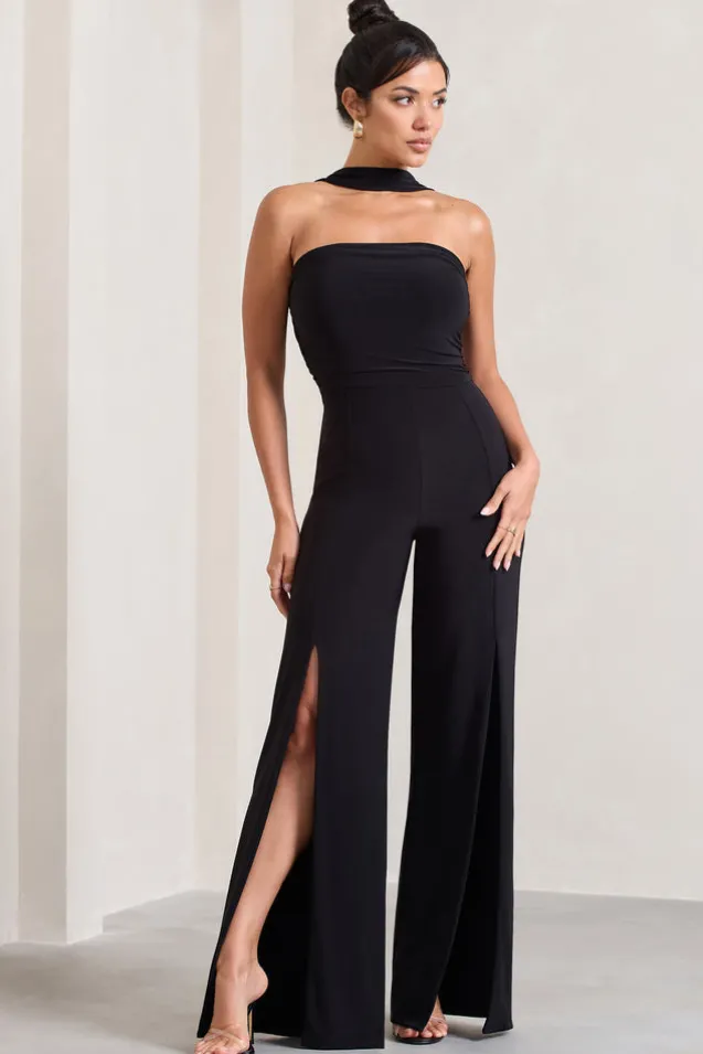 The Next Naomi | Black Halter-Neck Bandeau Split-Leg Jumpsuit