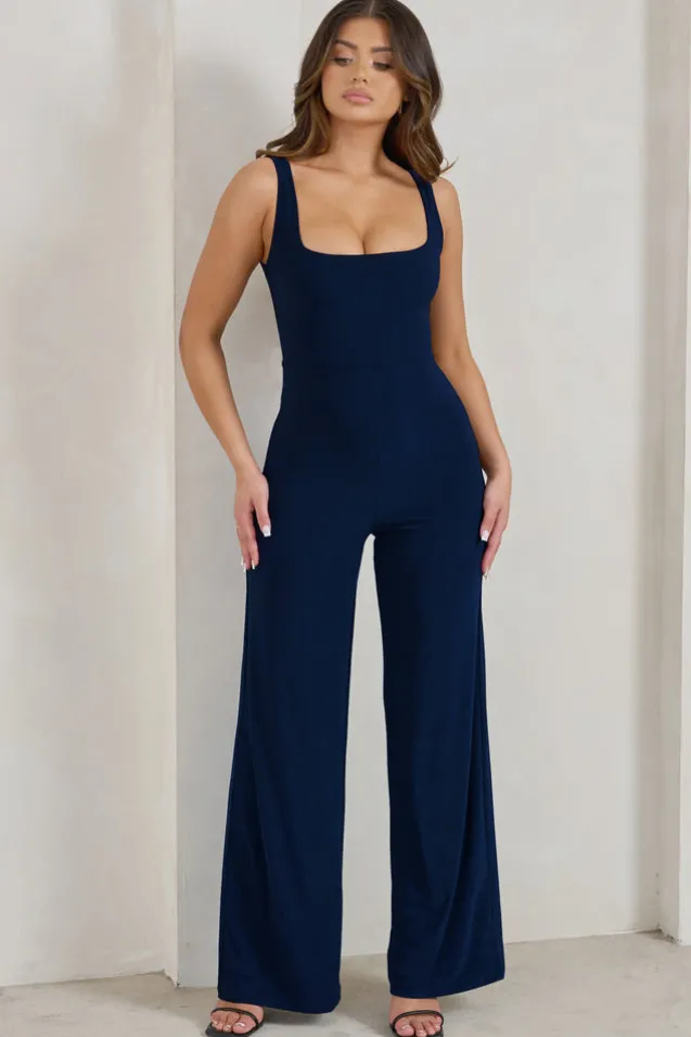 Toni | Navy Square Neck Sleeveless Jumpsuit