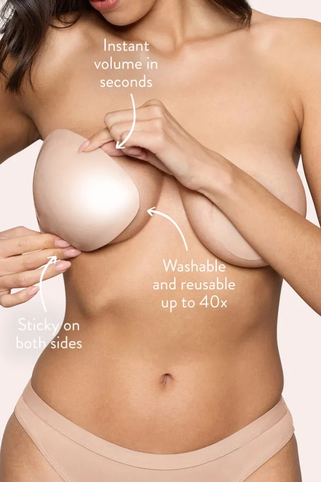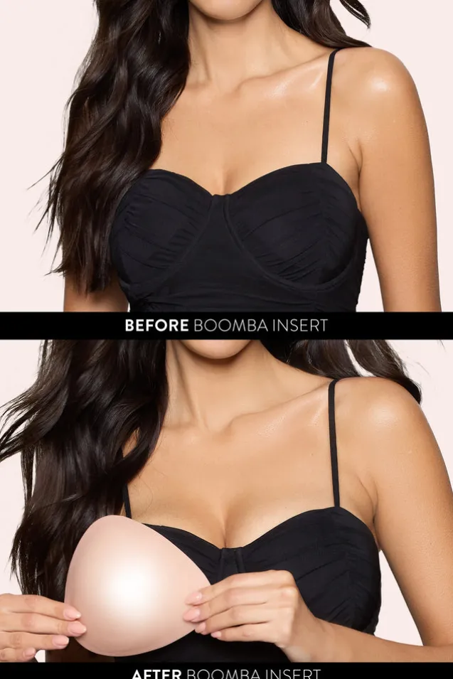 The most padded insert on the market. The go-to for that wow factor. Instantly boost up to 2 cup sizes. Recommended for tops with structure in the chest area. Features – Triangular-shaped, best for low v-cut tops- Boosts up to 2 cup sizes- Double-sided adhesive for extra security – No sewing required and interchangeable between outfits- Our inserts are not intended for individuals who have sensitive or thin skin, or women who are pregnant or breastfeeding.How To Use1. Dress as normal, ensuring your top, dress or jumpsuit is tight fitting.2. Stick inserts into the inside of your clothing first, NOT YOUR SKIN.3. Lift your breasts up and towards the centre to create cleavage.4. While positioning, press the inserts onto each breast and press firmly to secure.5. Check both sides are even and adjust if needed.Like traditional inserts, BOOMBA inserts need to be used inside clothing. They cannot be used by themselves.*Please note, to receive a full refund for Boomba products all items must be returned to us unworn, unused and in the same condition they were received, with their packaging unopened*