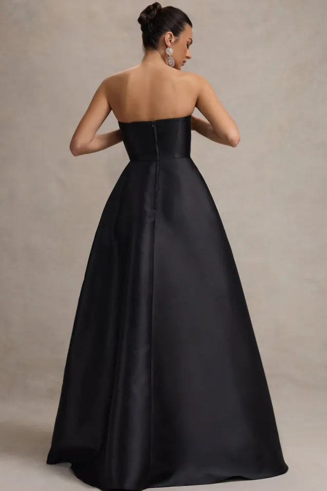 Universe | Black Bandeau Puff-Skirt Split Maxi Dress