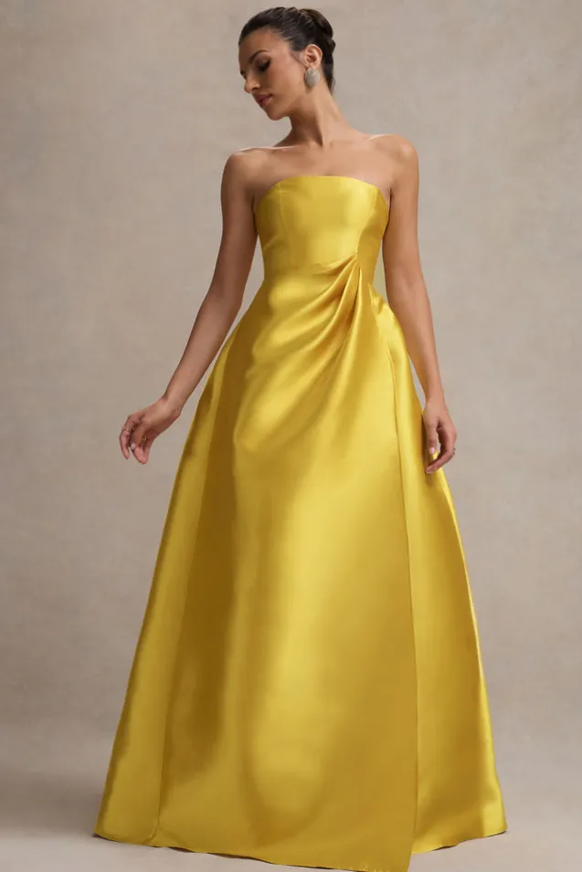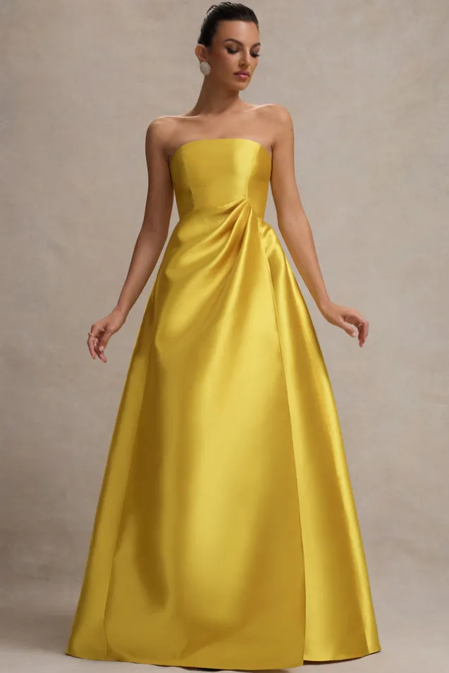 Universe | Mustard Bandeau Split Puff-Skirt Maxi Dress
