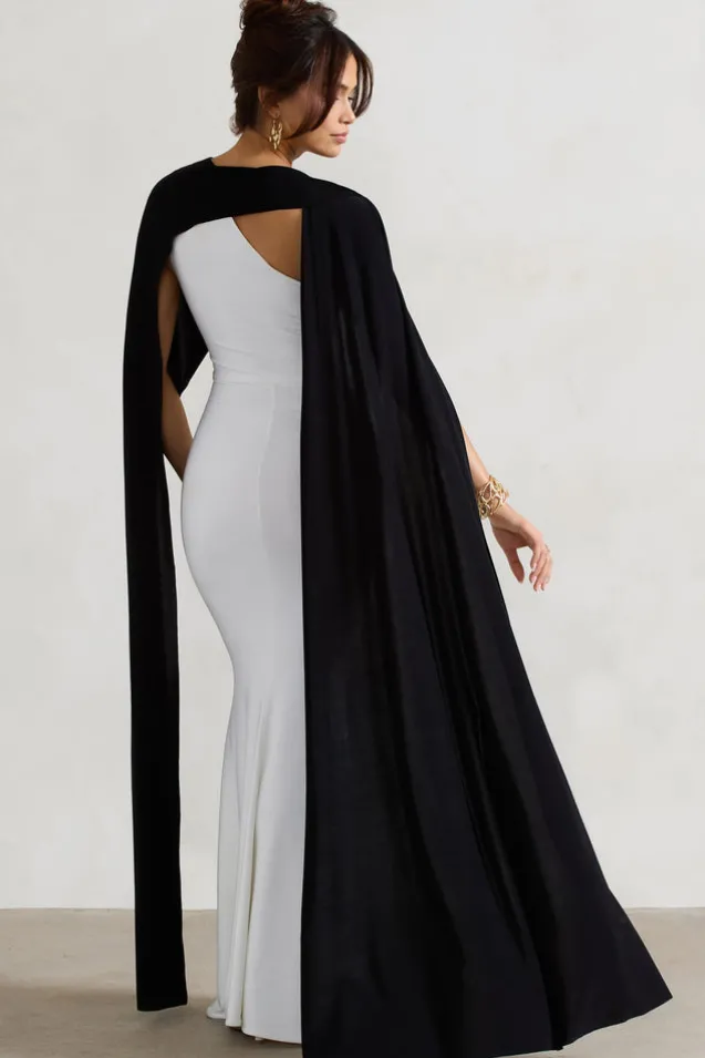 Vianna | White Strapless Maxi Dress With Black Cape