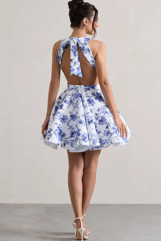 Named Waverly after its flouncy skater skirt, this blue floral mini is on everyones wish-list this season. Boasting a self-tie racer neckline and sultry open-back, Waverly is the epitome of a new season silhouette. Compliment yours with some strappy stilettos and gold accents during your next getaway.Features – Premium stretch scuba crepe- Racer neckline – Self-tie collar- Open back- Invisible zip closure – Skater skirt- Volume hem- Mini length Sizing & Fit Model is 5’7″ and wears UK size 8/US size 4Product Information Designed exclusively by Club L London Lined with good stretch Premium scuba crepe in Blue Floral Print (95% Polyester, 5% Elastane) 85cm total length
