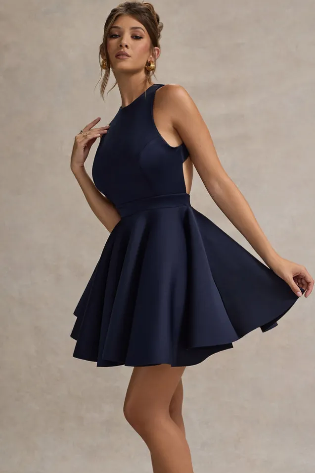 Waverly | Navy Racer-Neck Sleeveless Skater Mini Dress