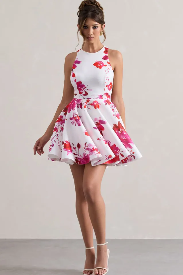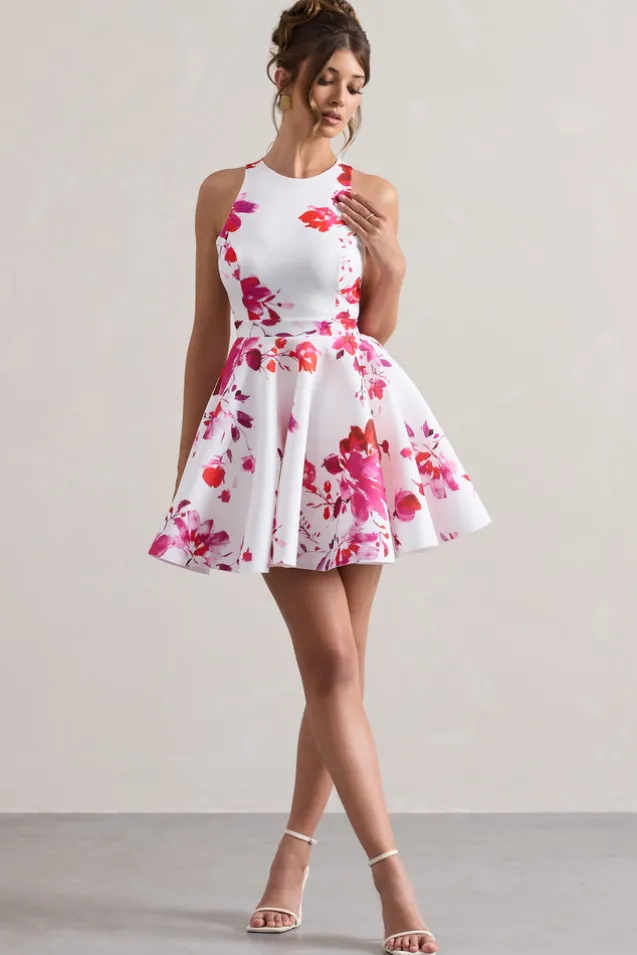 Waverly | Pink Floral Racer-Neck Sleeveless Skater Mini Dress