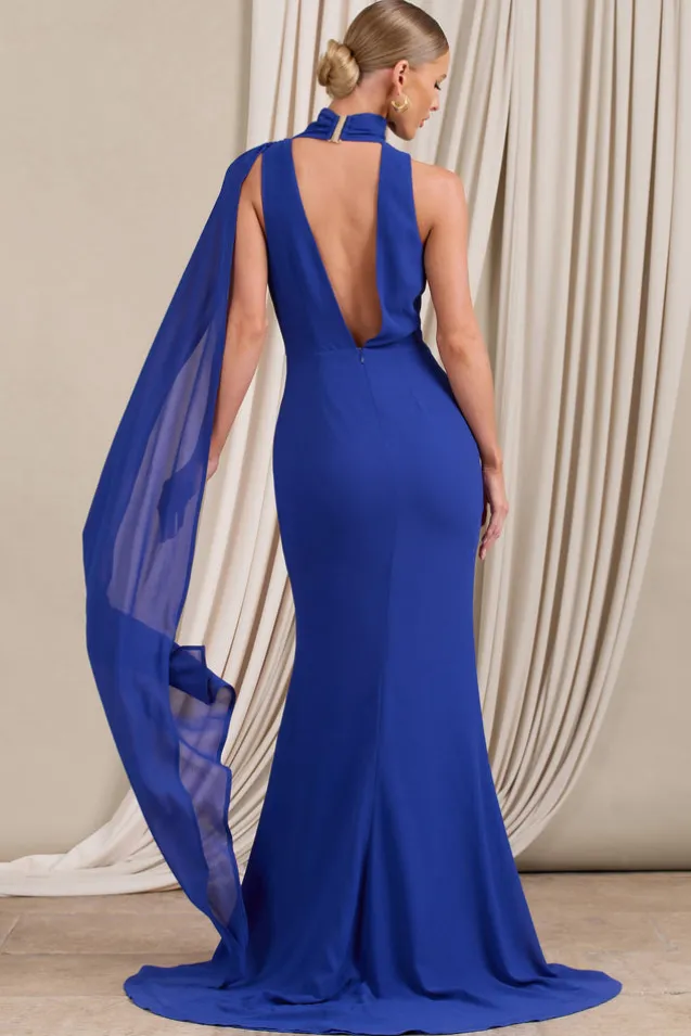 Made from electric blue chiffon in a striking fishtail silhouette, you won’t find a maxi dress more extravagant than Whimsical. The long blue dress boasts a plunging neckline with a halter collar wrapped by a sheer draped scarf. Gathered at the waist to accentuate your curves, Whimsical is the perfect option for weddings, prom nights and every special occasion in between.Features- Premium woven fabric and chiffon- Plunging halter neckline- Swan hook closure- Draped scarf- Gathered waistline- Decorative lace drawstrings- Invisible zip closure- Split fishtail skirt- Maxi lengthSizing & FitModel is 5’8 and wears UK size 8 /US size 4Product InformationDesigned exclusively by Club L LondonPartially lined with no stretchPremium woven fabric and chiffon in Electric Blue (100% Polyester)157cm total length