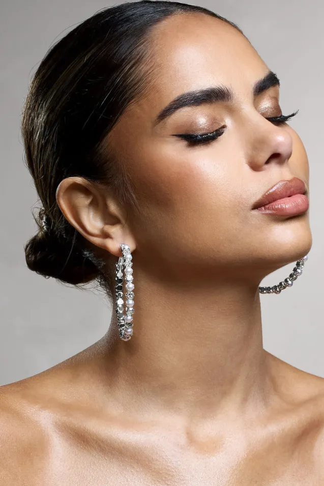 Winter | Silver Diamante u0026 Pearl Hoop Earrings