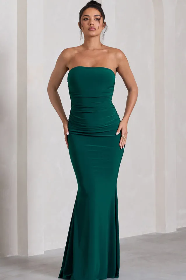 Wren | Bottle Green Ruched Bandeau Maxi Dress