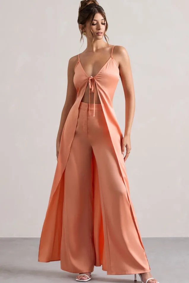 Your Way | Peach Satin Wide-Leg Trousers