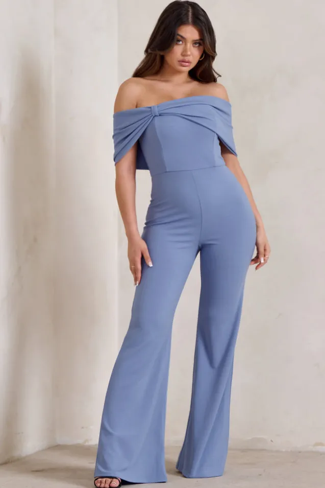 Zoey | Blue Bardot Bow Detail Jumpsuit
