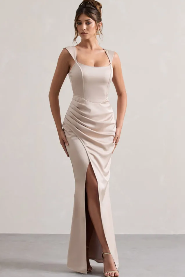 A Romantic | Champagne Satin Corset Wrap Maxi Dress