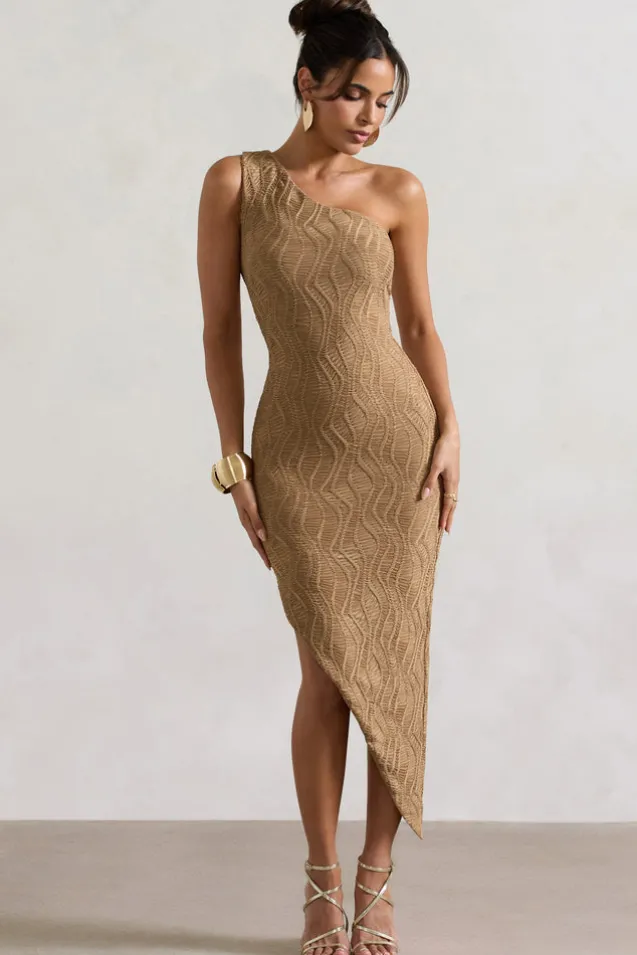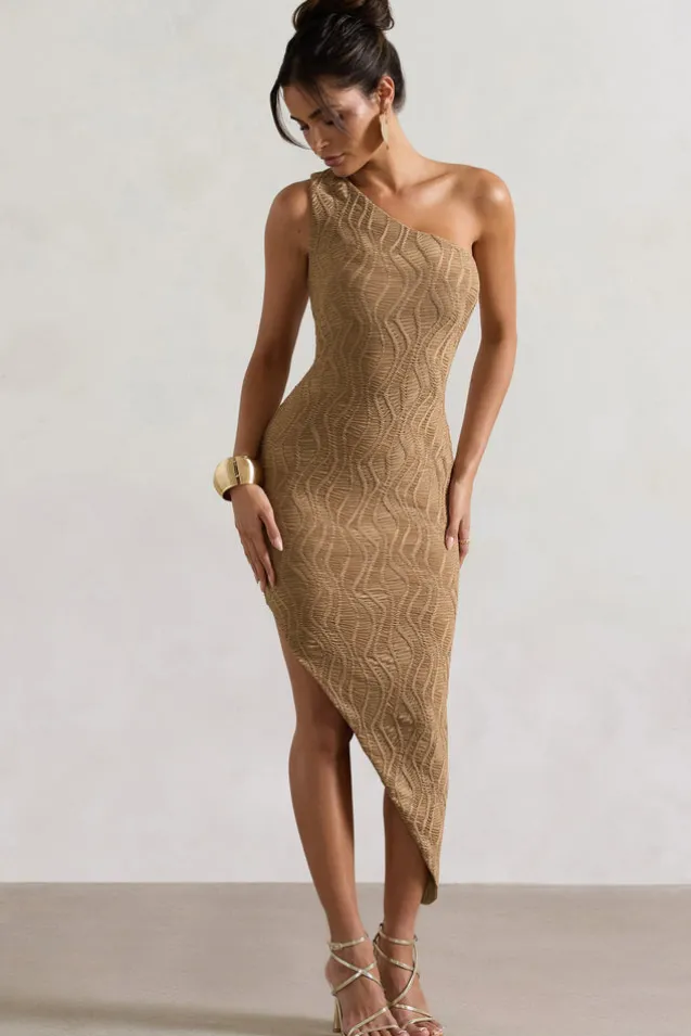 Abu Dhabi | Camel Textured Asymmetric Maxi Dress