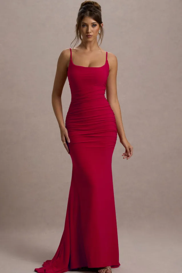 Adele | Red Ruched Fishtail Cami Maxi Dress