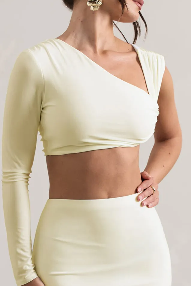 Agalia | Cream Ruched Asymmetric One-Sleeve Crop Top