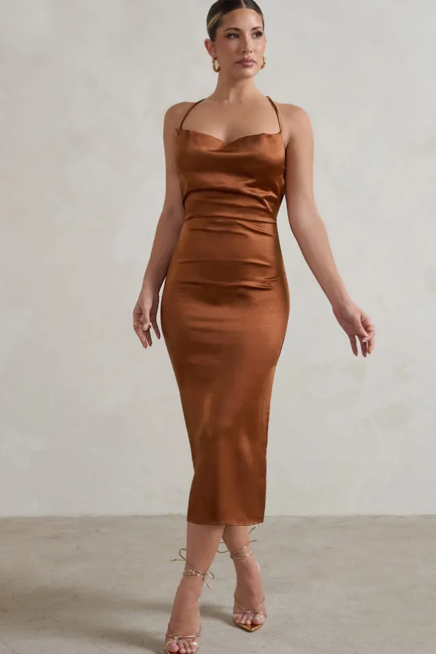 Aja | Copper Cowl Cami Midi Dress With Waist Tie