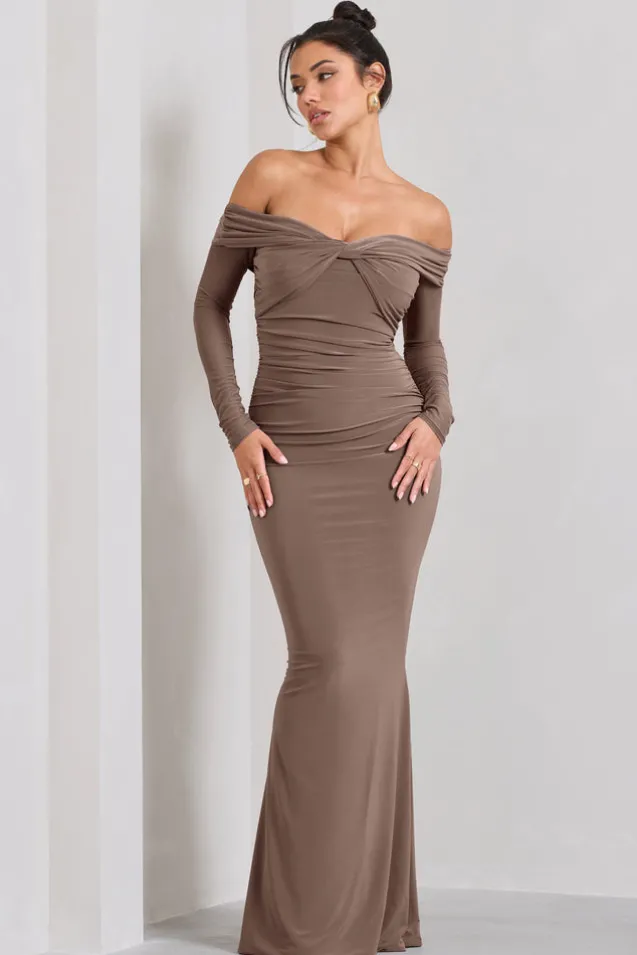 Alex | Mocha Bardot Twist Maxi Dress