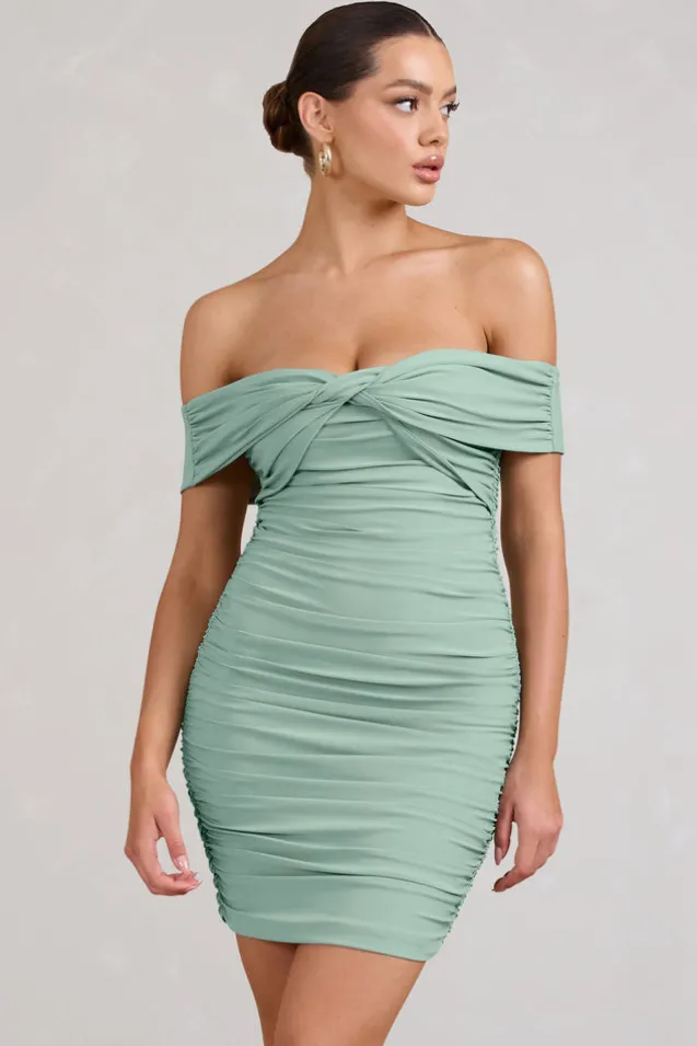 Appreciate | Sage Off The Shoulder Ruched Mini Dress