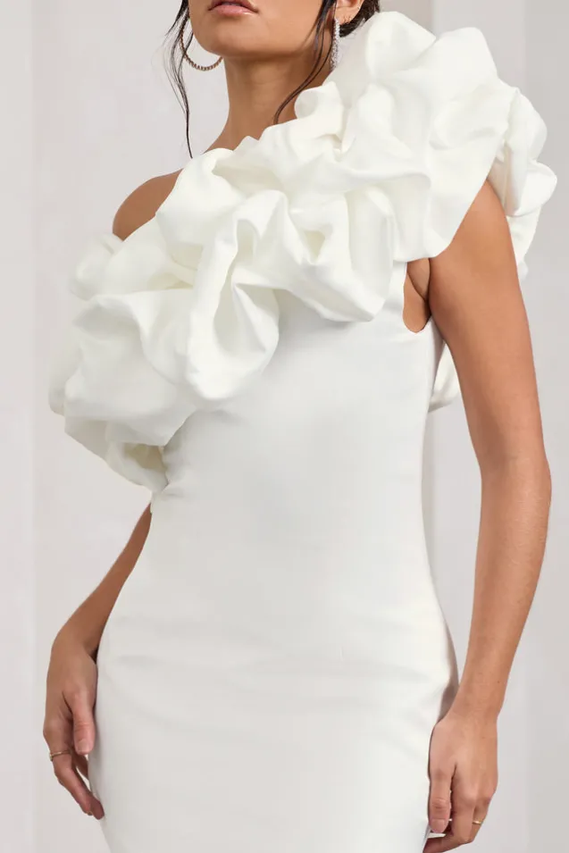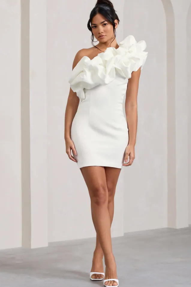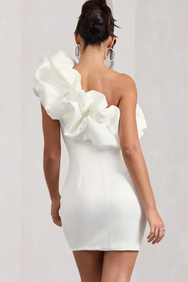 At The Opera | White Satin One Shoulder Ruffled Mini Dress