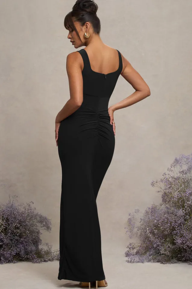 Showcase your bump at that upcoming baby shower in our figure-framing Avril maxi dress. Designed in a classic black shade of our signature stretch jersey, this maternity maxi dress features a square neckline with wide shoulder straps and a split full-length skirt. Finish Avril with a pair of diamond earrings like our statement Corina hoops.Features- Premium stretch jersey- Square neckline- Shoulder straps- Bump ruching- Split hem- Maxi lengthSizing & FitModel is 5’9” and wears UK size 8/US size 4Product InformationDesigned exclusively by Club L LondonDouble layered with ultra stretchPremium jersey in Black (95% Polyester, 5% polyester)153cm total length