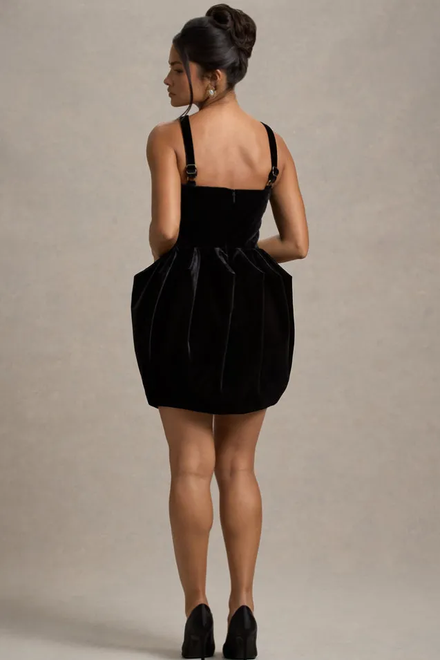 Bonet | Black Strappy Structured Velvet Mini Dress With Bow Detail