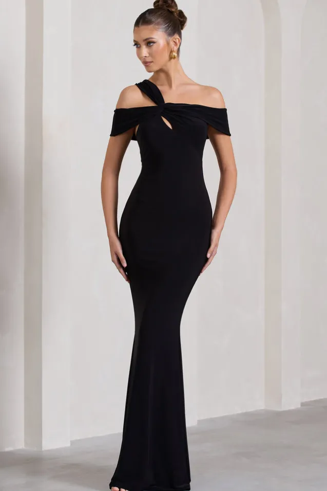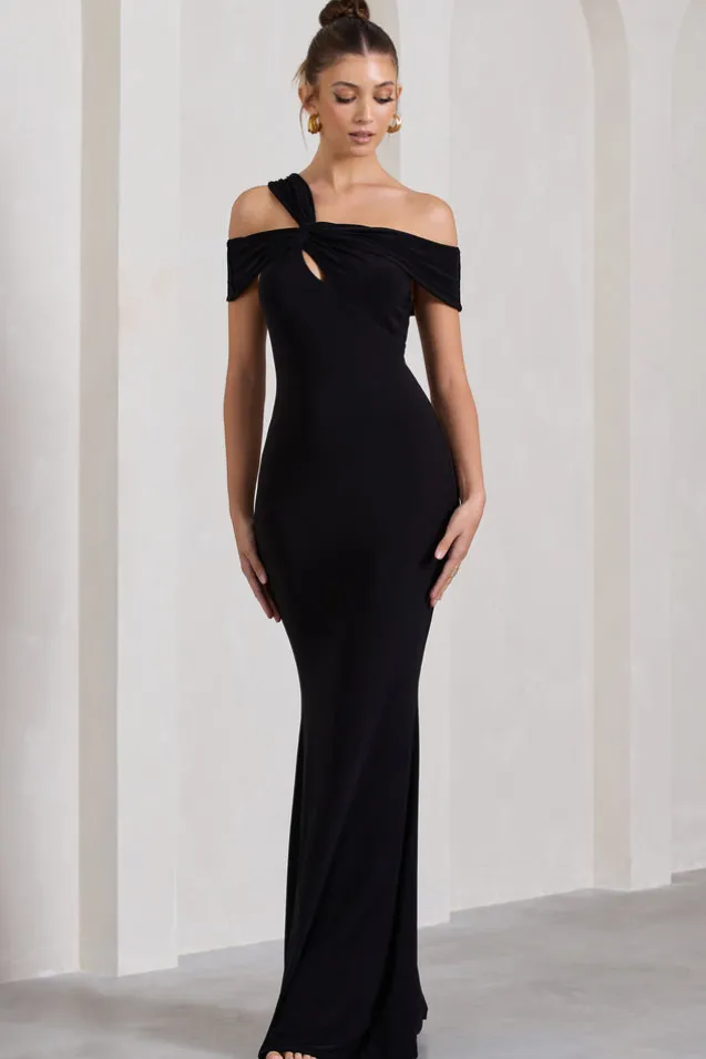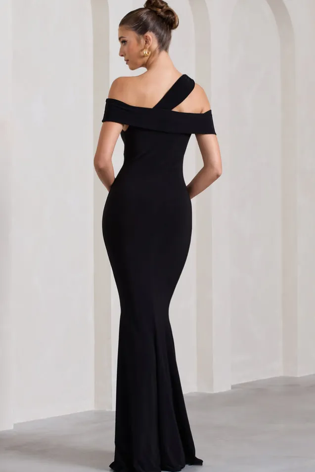 Captivating | Black Strappy Asymmetric Cut-Out Maxi Dress