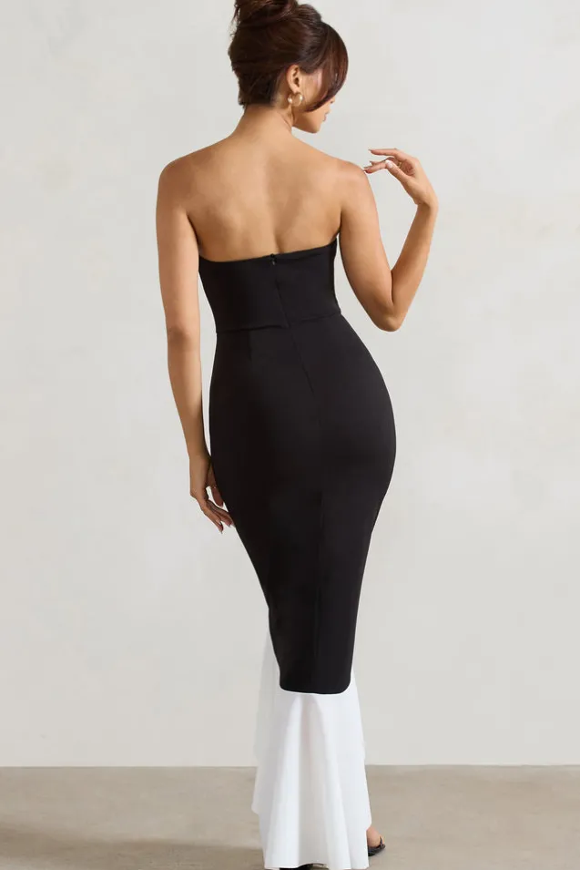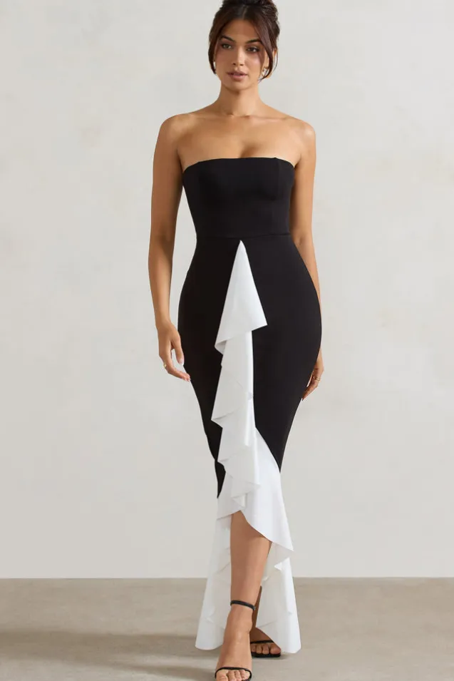 Carbonne | Black u0026 White Bandeau Ruffled Maxi Dress