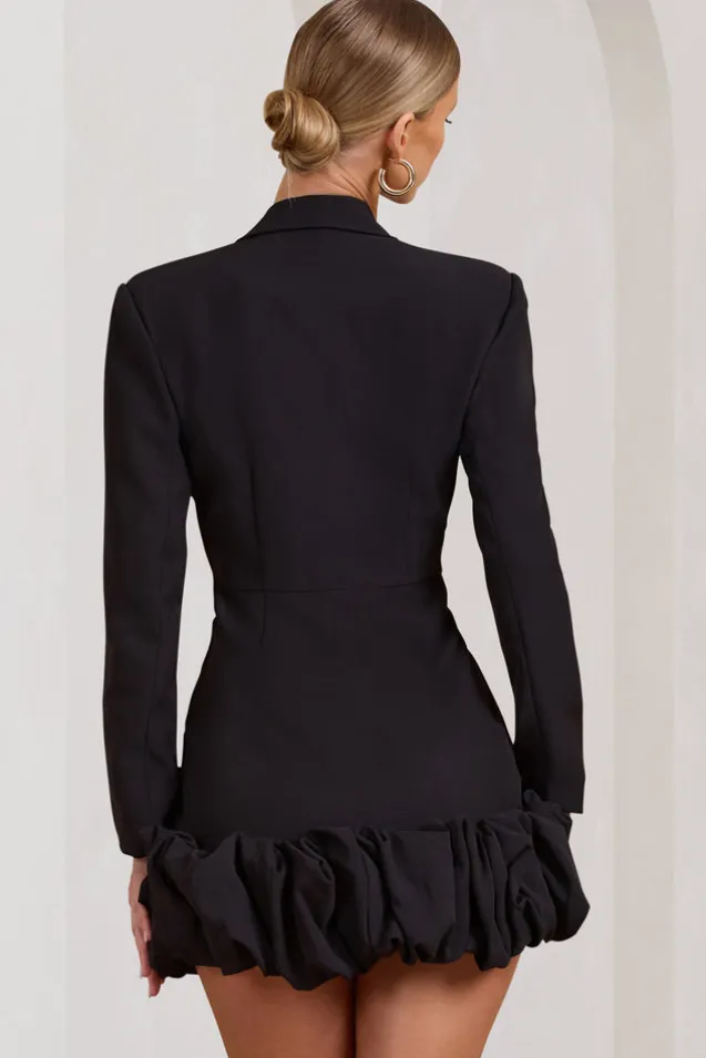 Cloud Catching | Black Tailored Blazer Mini Dress With Ruffled Hem