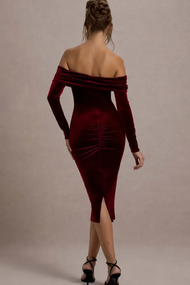 Be the first to review “Compliment | Berry Velvet Bardot Midi Dress” Cancel reply