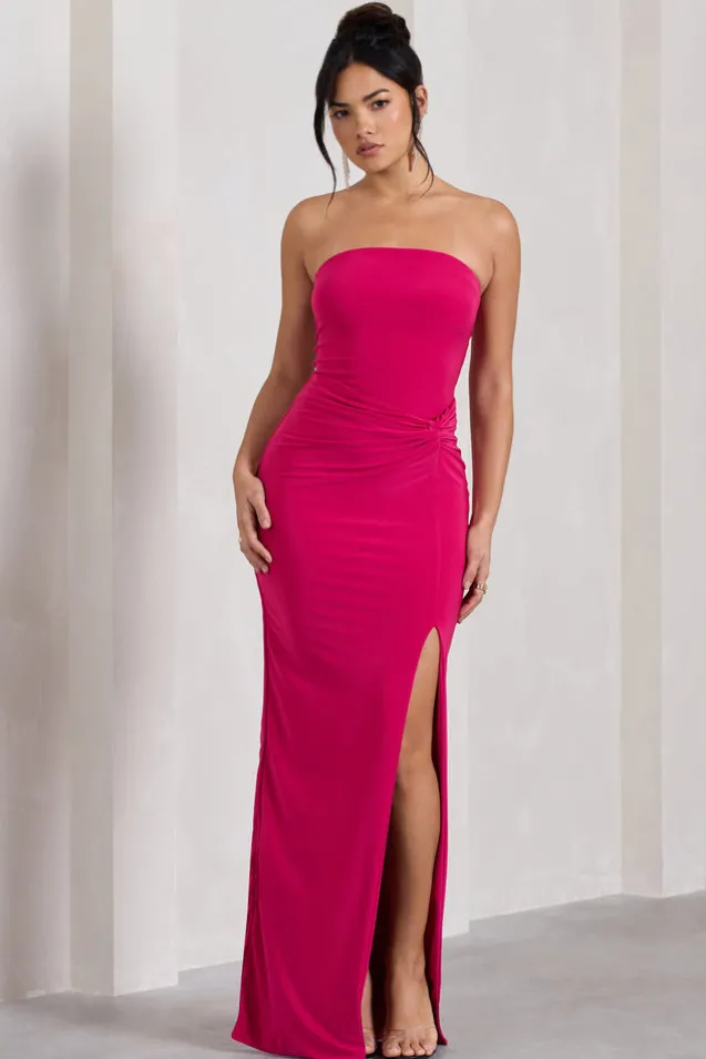 Dawning | Hot Pink Bandeau Knotted Split Maxi Dress