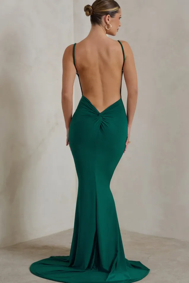 Endless Love | Green Backless Knot Detail Fishtail Maxi Dress