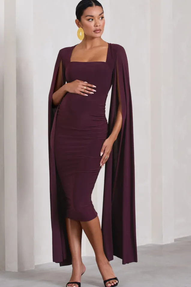 Flawless | Plum Maternity Square Neck Midi Dress With Cape Sleeves