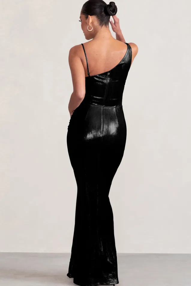 Dazzle and shine like celestial skies in our gorgeous Galaxy Shimmer maternity dress. Crafted from black lurex with excellent stretch to sculpt your silhouette, this metallic maxi would make a statement at any special occasion with its asymmetric cowl neckline, open back and cascading skirt. Complement Galaxy Shimmer’s sparkle with diamond hoops and an encrusted clutch bag.Features- Premium stretch jersey- Metallic shimmer- Ruched bump sculpting detailing- Cowl neckline- Asymmetric shoulder straps- Open cowl back- Bodycon fit- Cascade hemline- Maxi lengthSizing & FitModel is 5’9″ and wears UK size 8/US size 4Product InformationDesigned exclusively by Club L LondonFully lined with excellent stretchPremium metallic jersey in Black (96% Polyester, 4% Elastane) 157cm total length