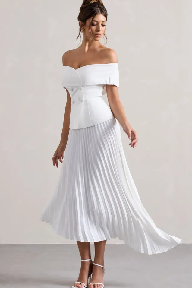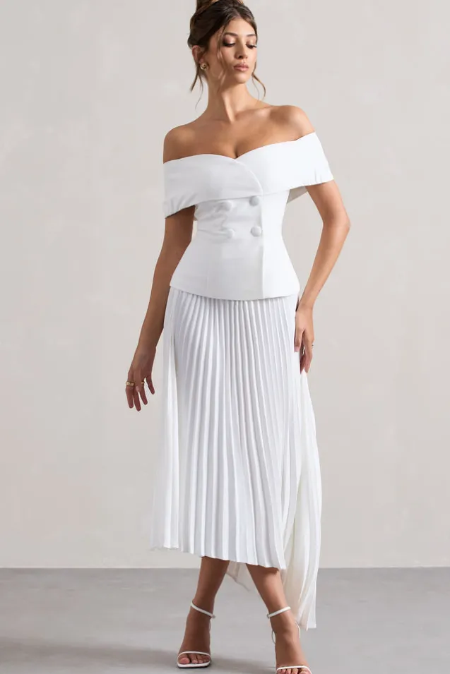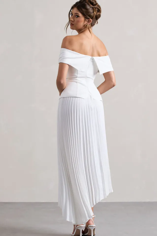 Hattie | White Bardot Tailored Maxi Dress With Plisse Skirt