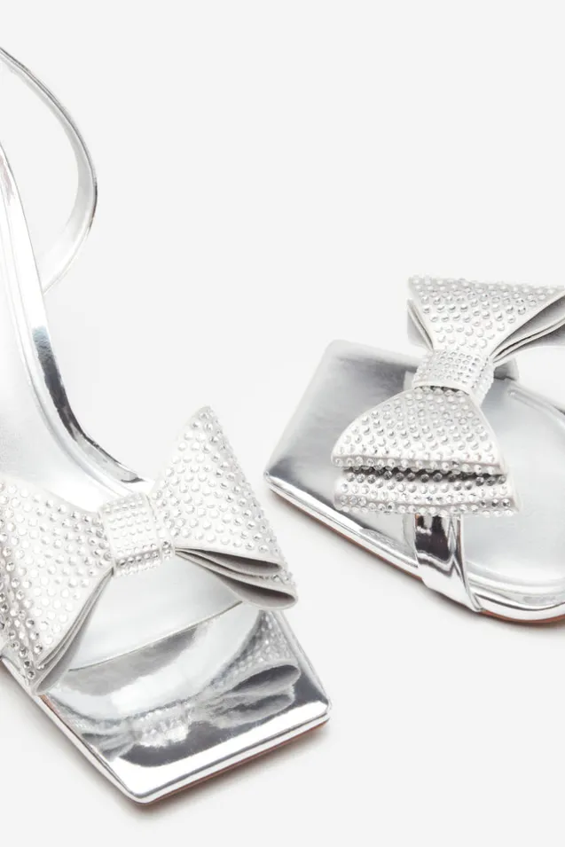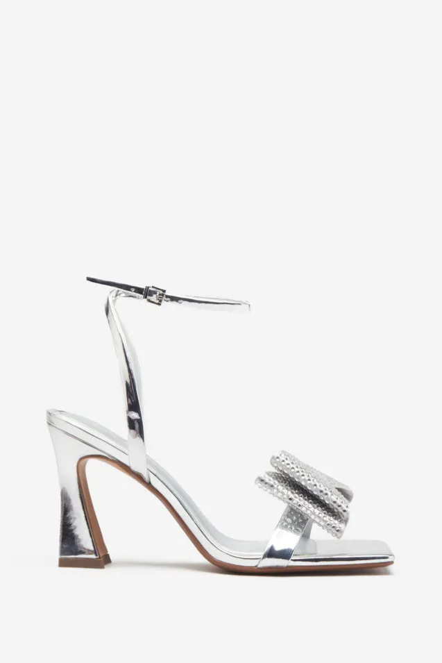 Headlines | Silver Ankle Strap Heeled Sandals With Diamante Bows