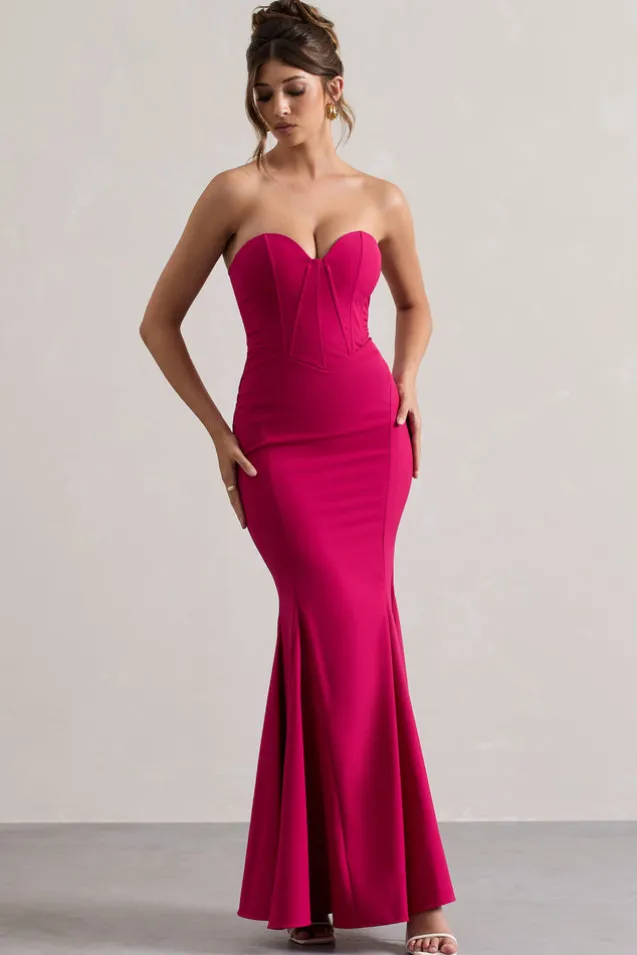 Idyllic | Hot Pink Strapless Corset Style Fishtail Maxi Dress