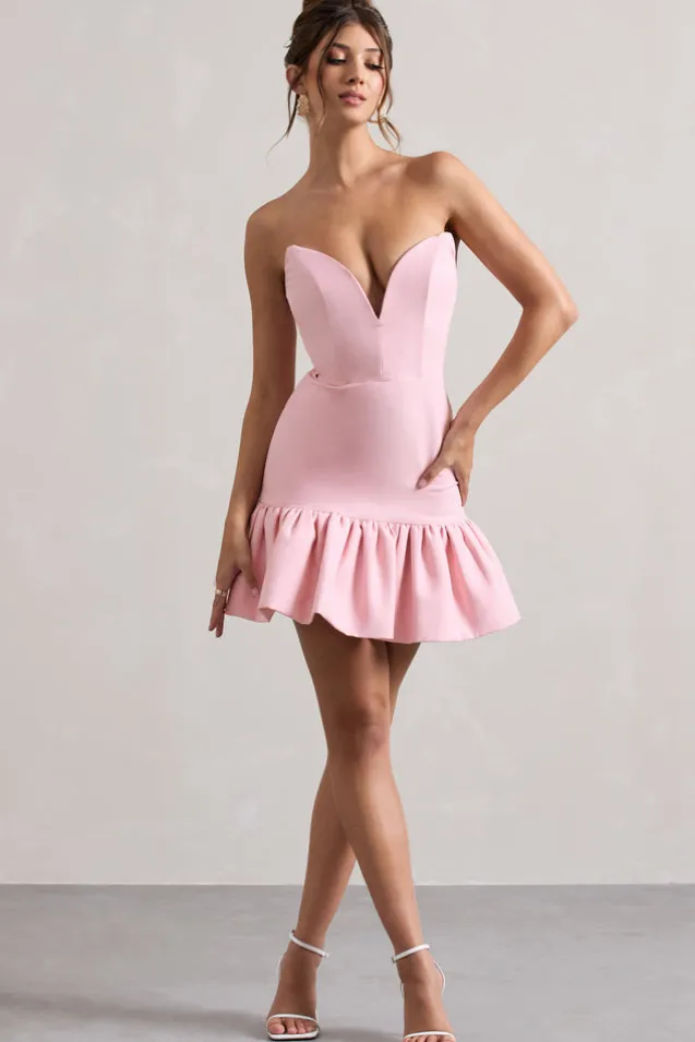 Koko | Pink Sweetheart Mini Dress With Ruffle Hem