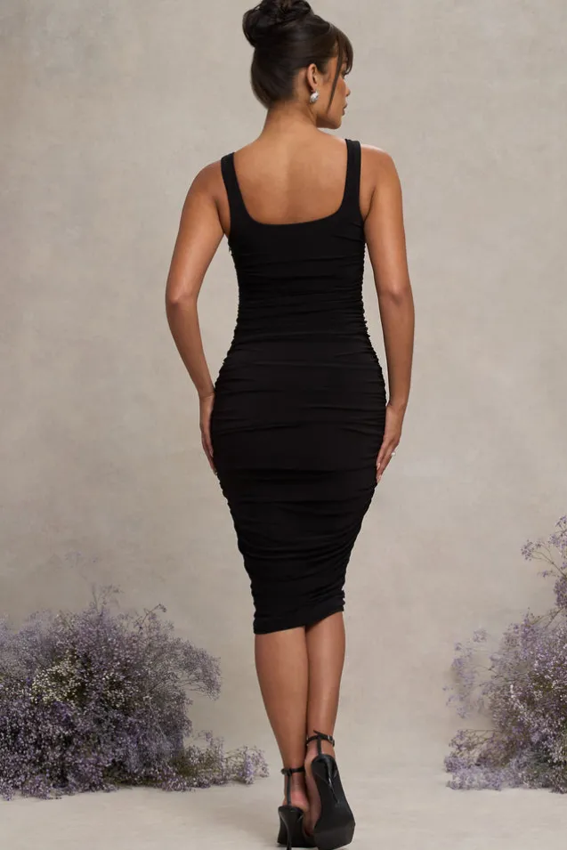 Lisbon | Black Maternity Square Neck Ruched Midi Dress